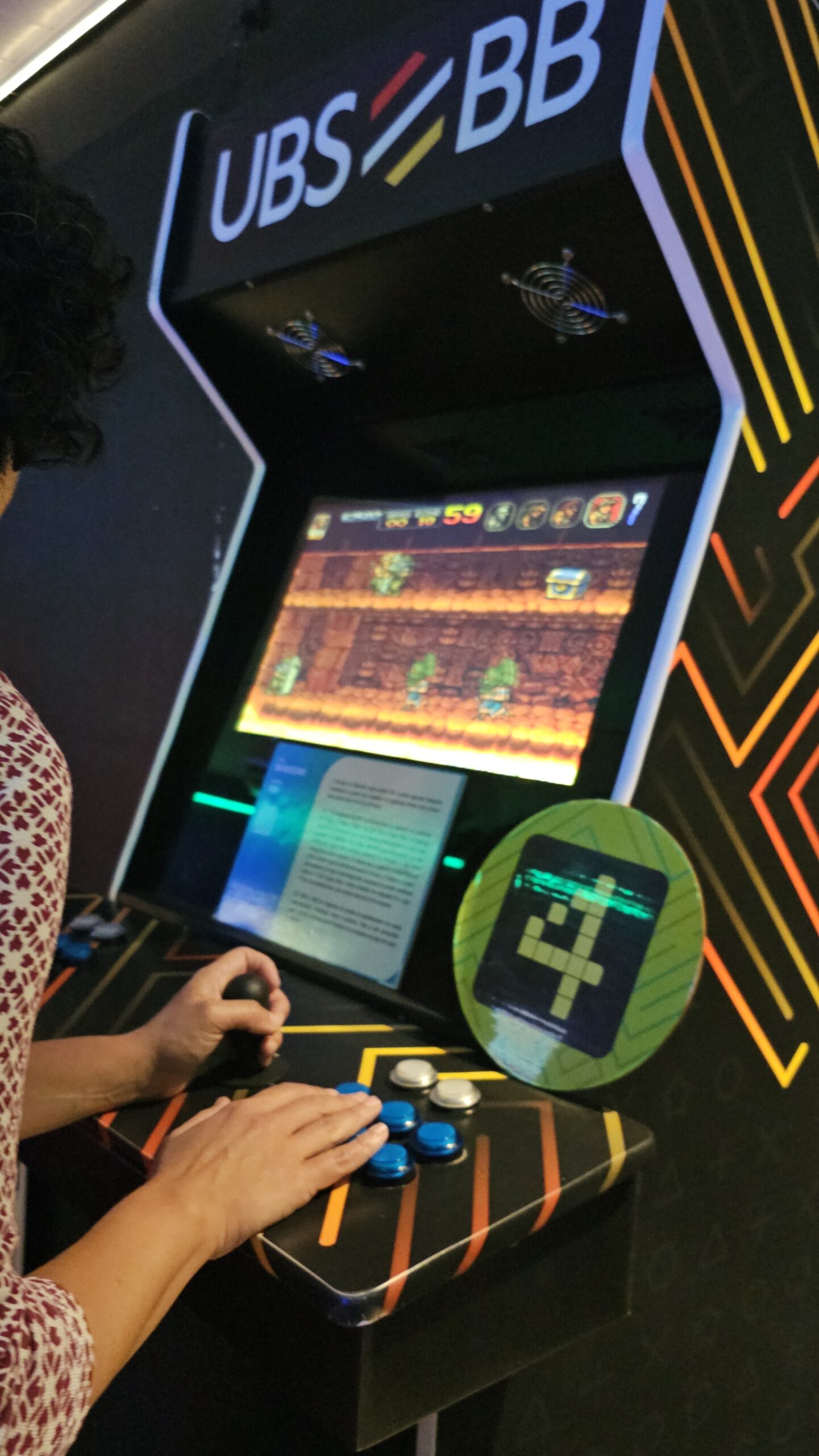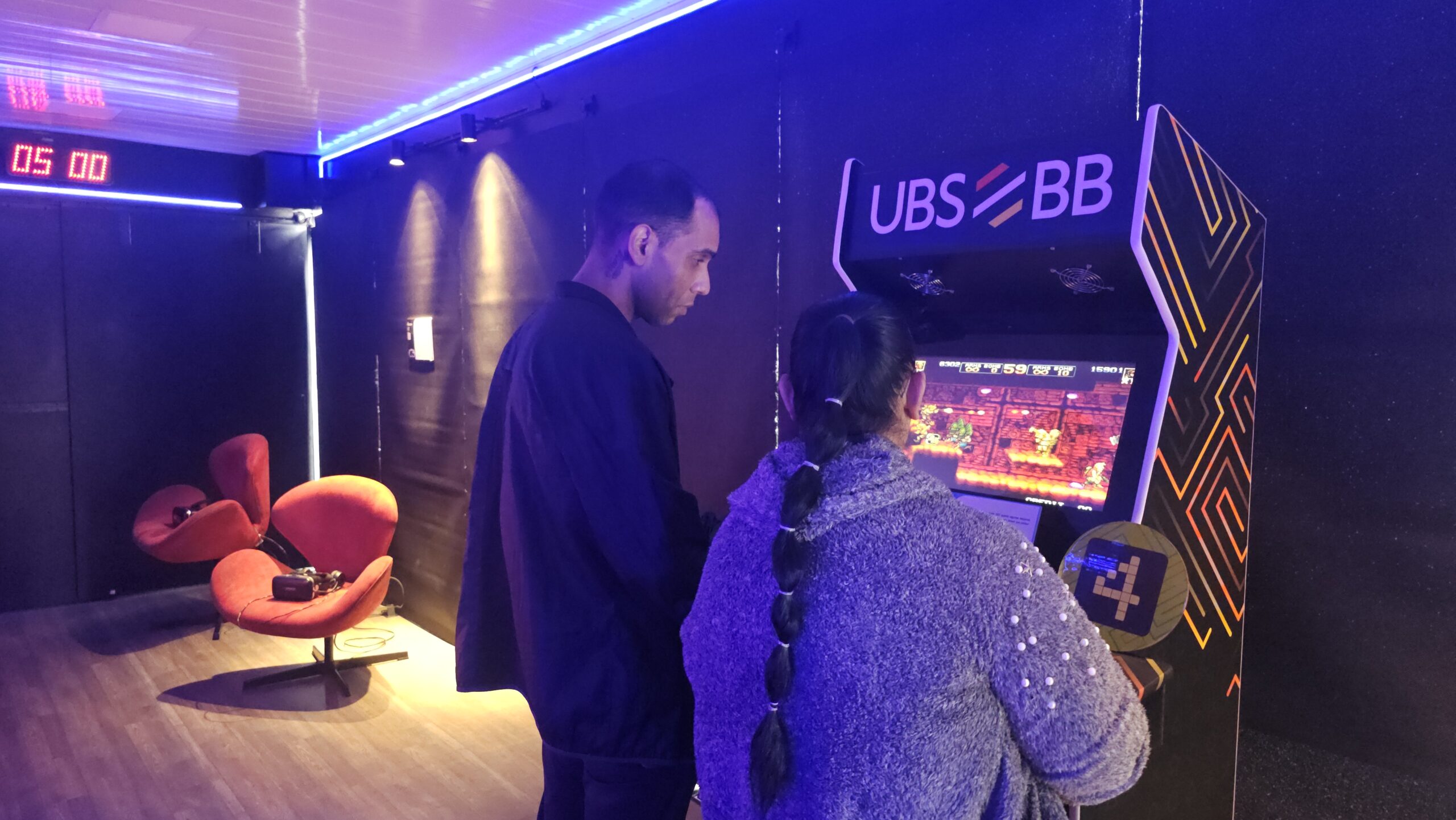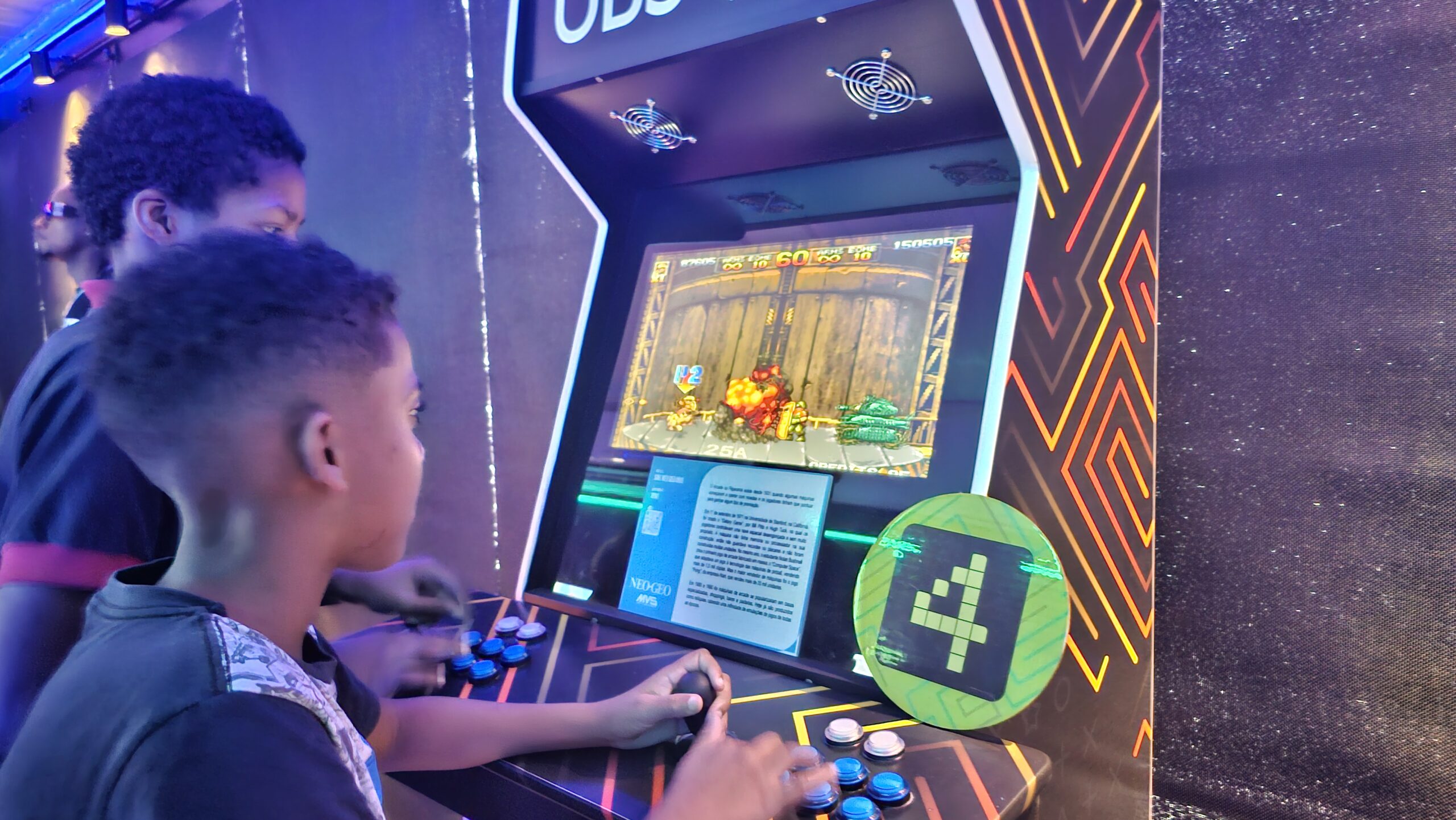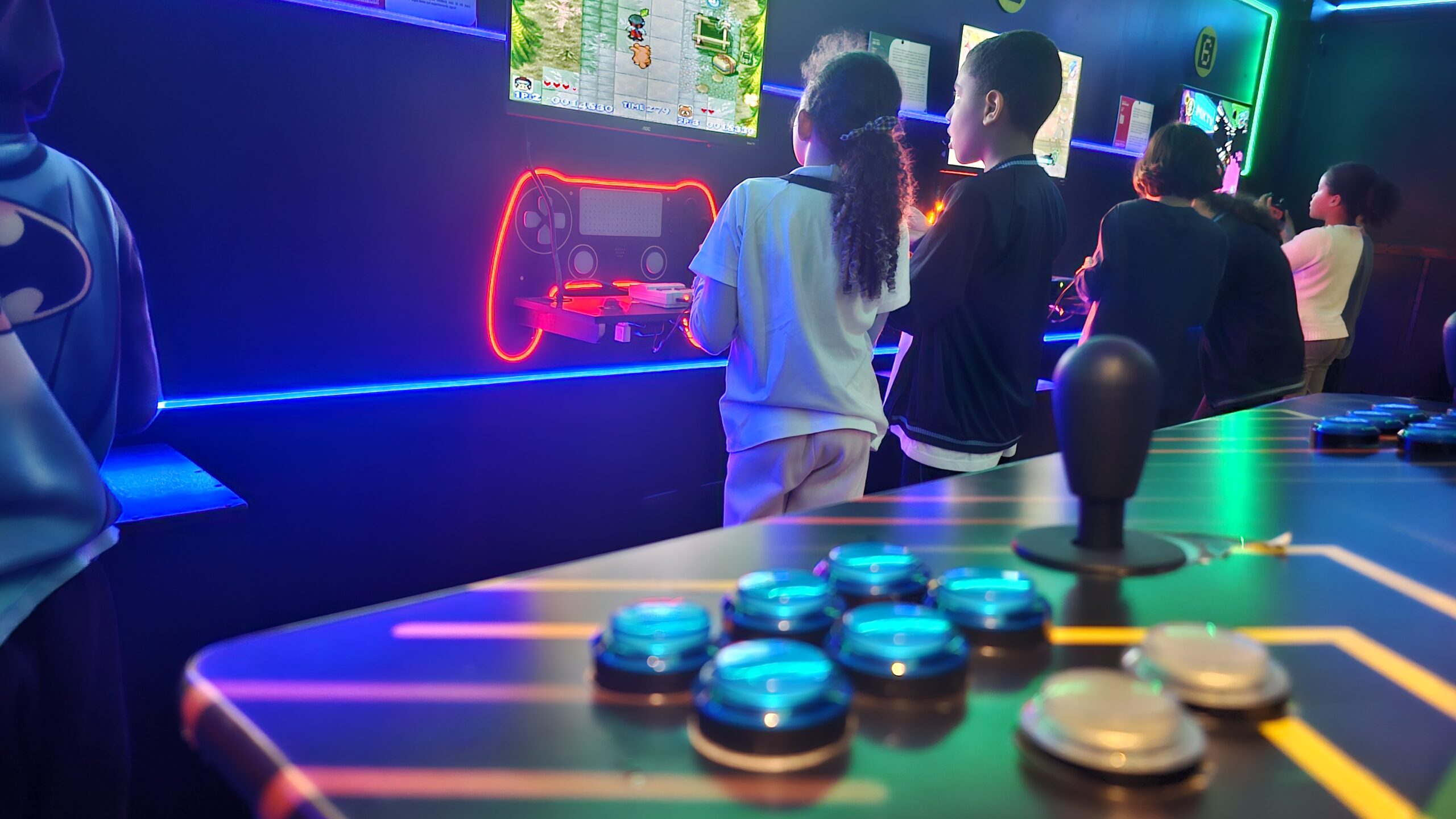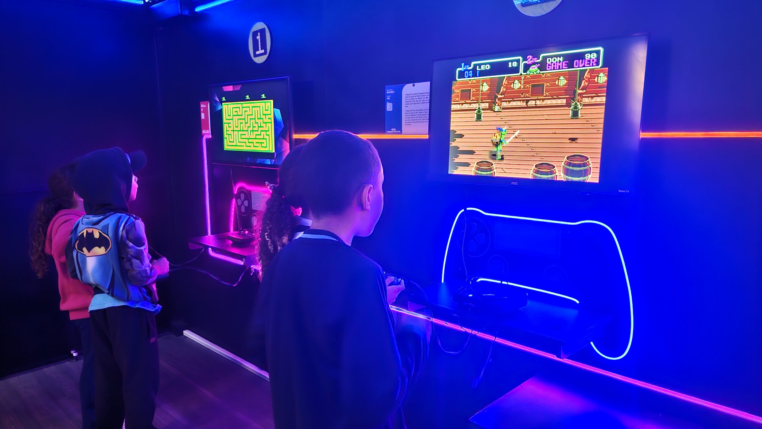 A exposição também é um jogo! Os visitantes fazem um circuito em duplas, experienciando games cooperativos e na modalidade versus, para curtir todos os diferentes tipos de jogos enquanto viajam de maneira interativa pela linha histórica dos videogames.