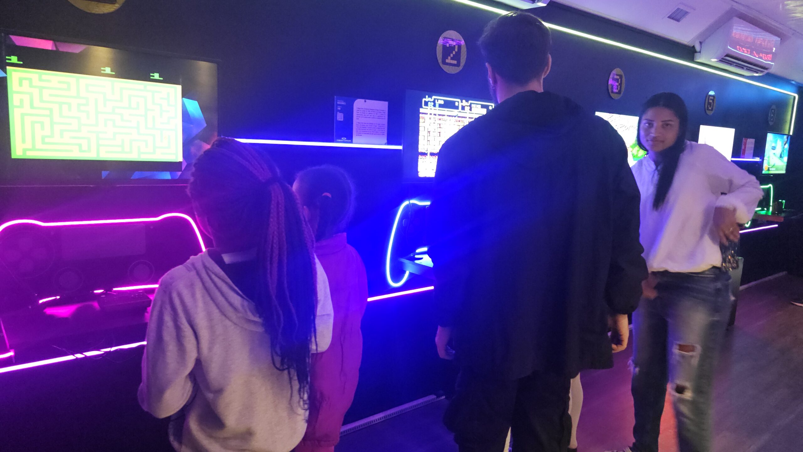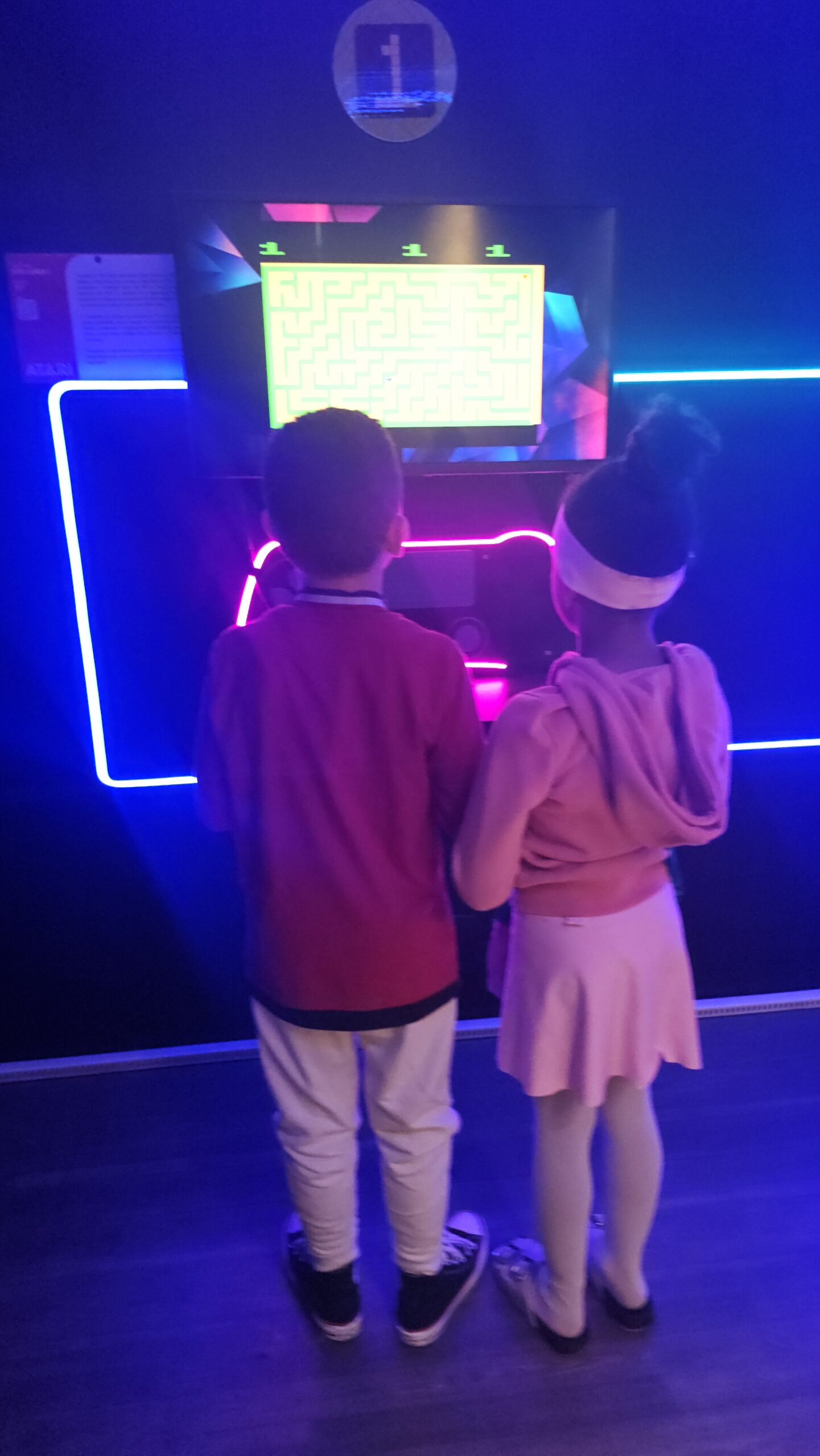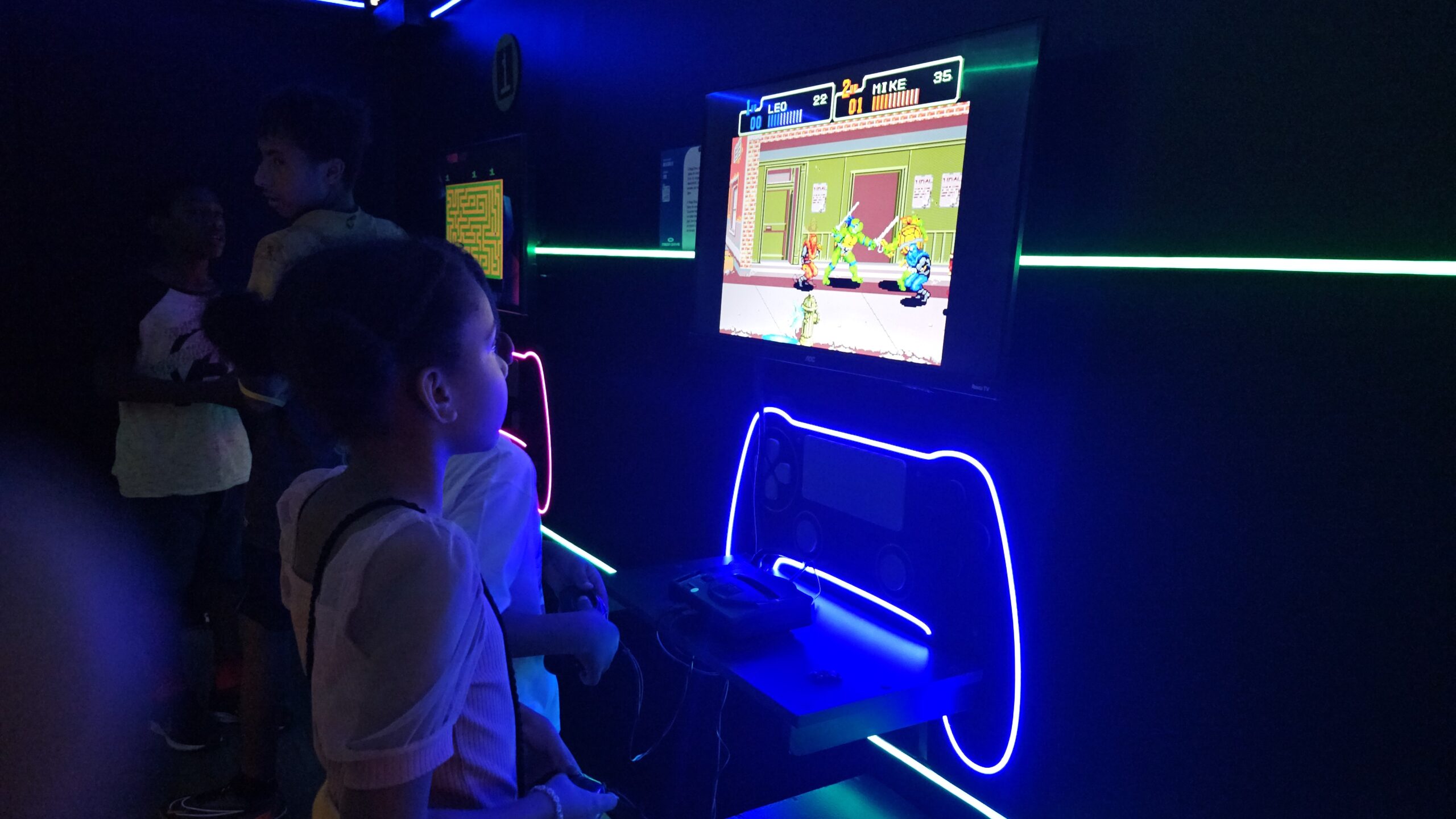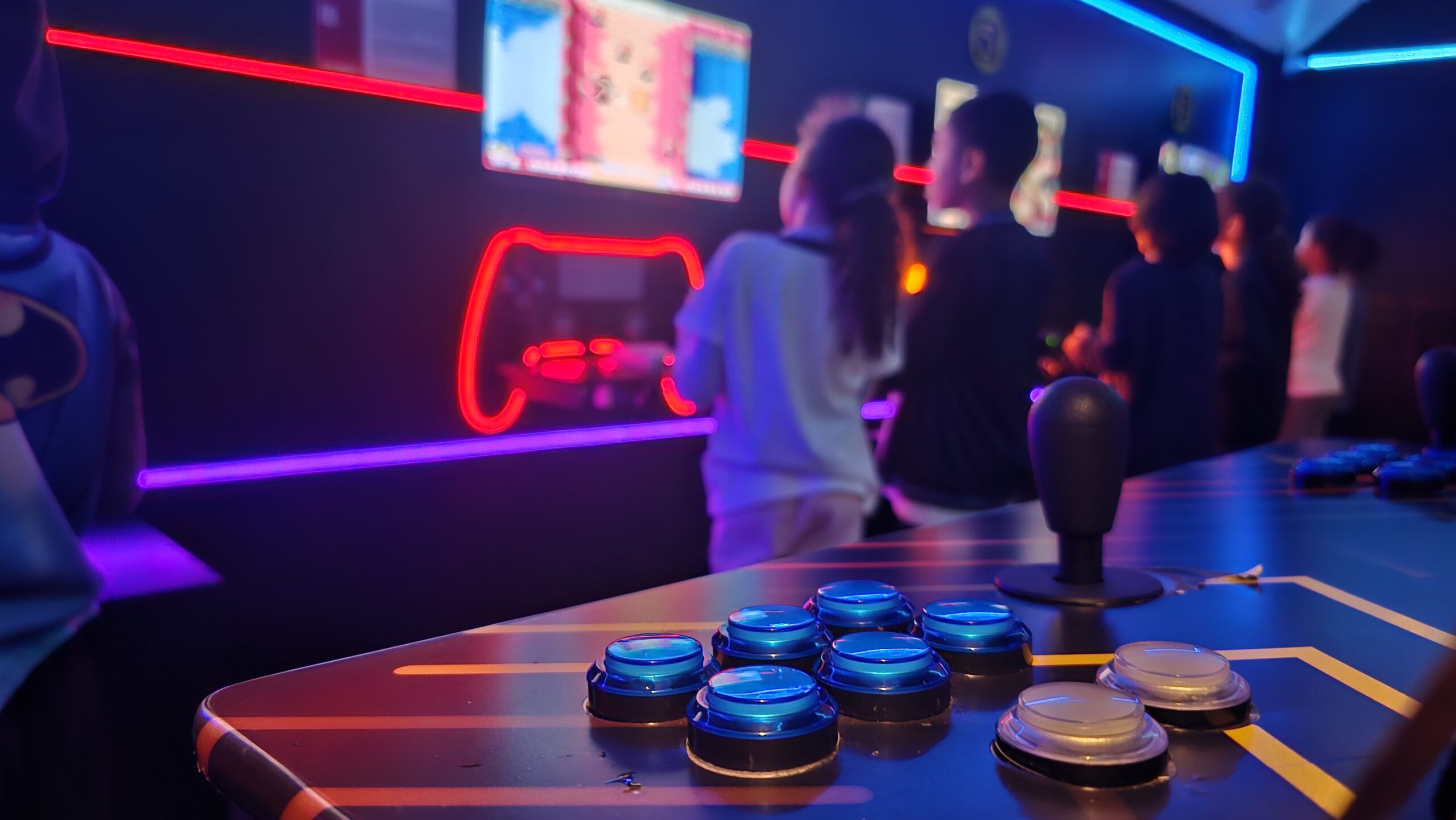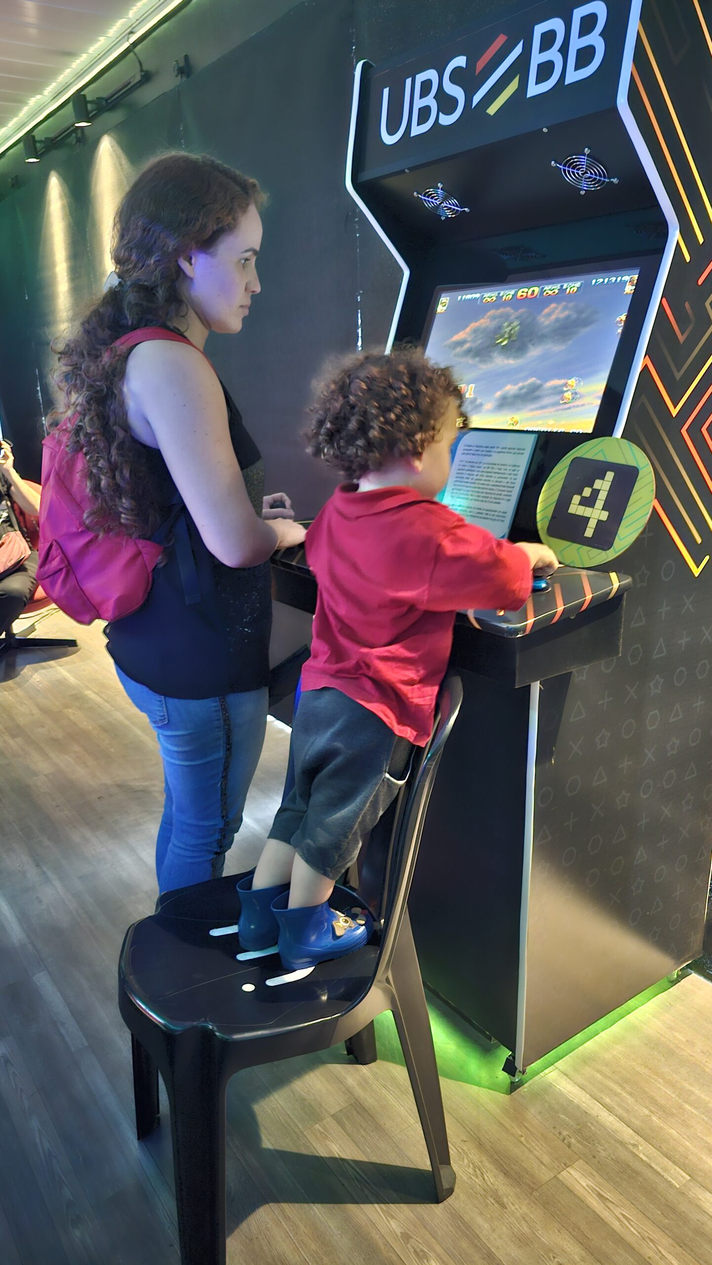 A exposição também é um jogo! Os visitantes fazem um circuito em duplas, experienciando games cooperativos e na modalidade versus, para curtir todos os diferentes tipos de jogos enquanto viajam de maneira interativa pela linha histórica dos videogames.
