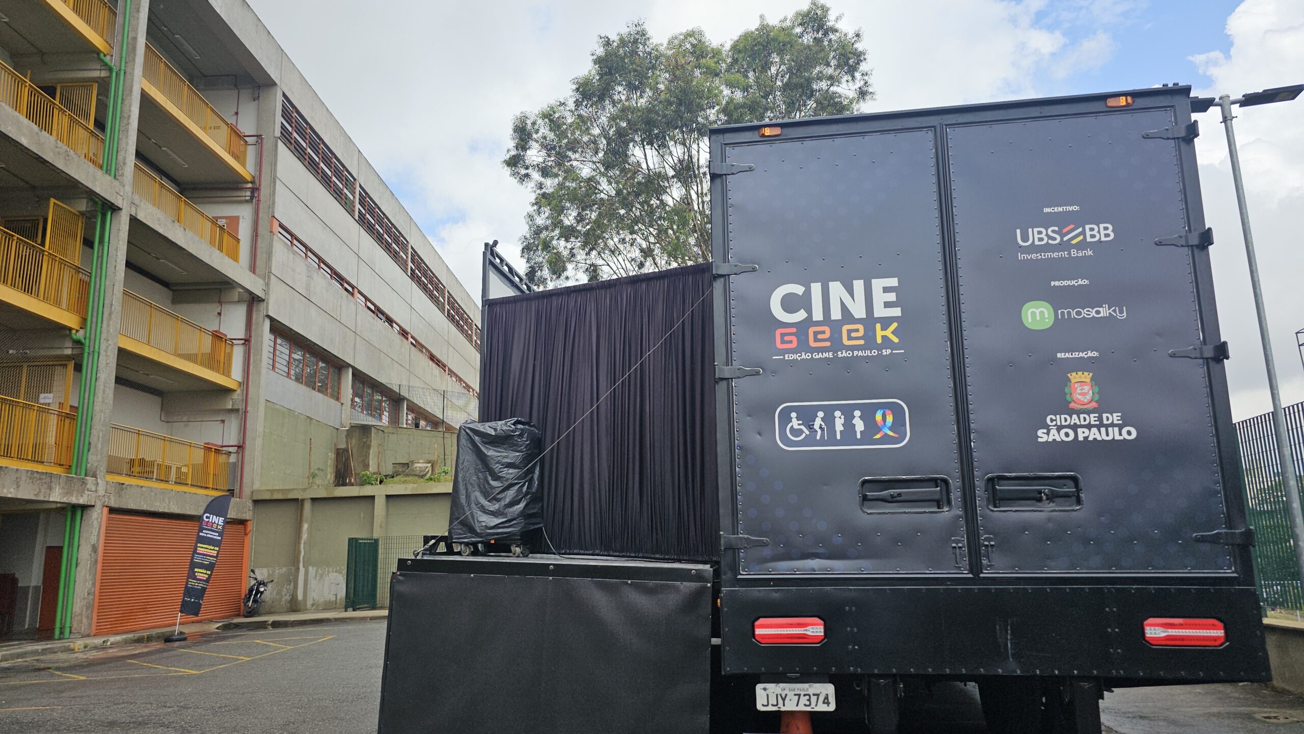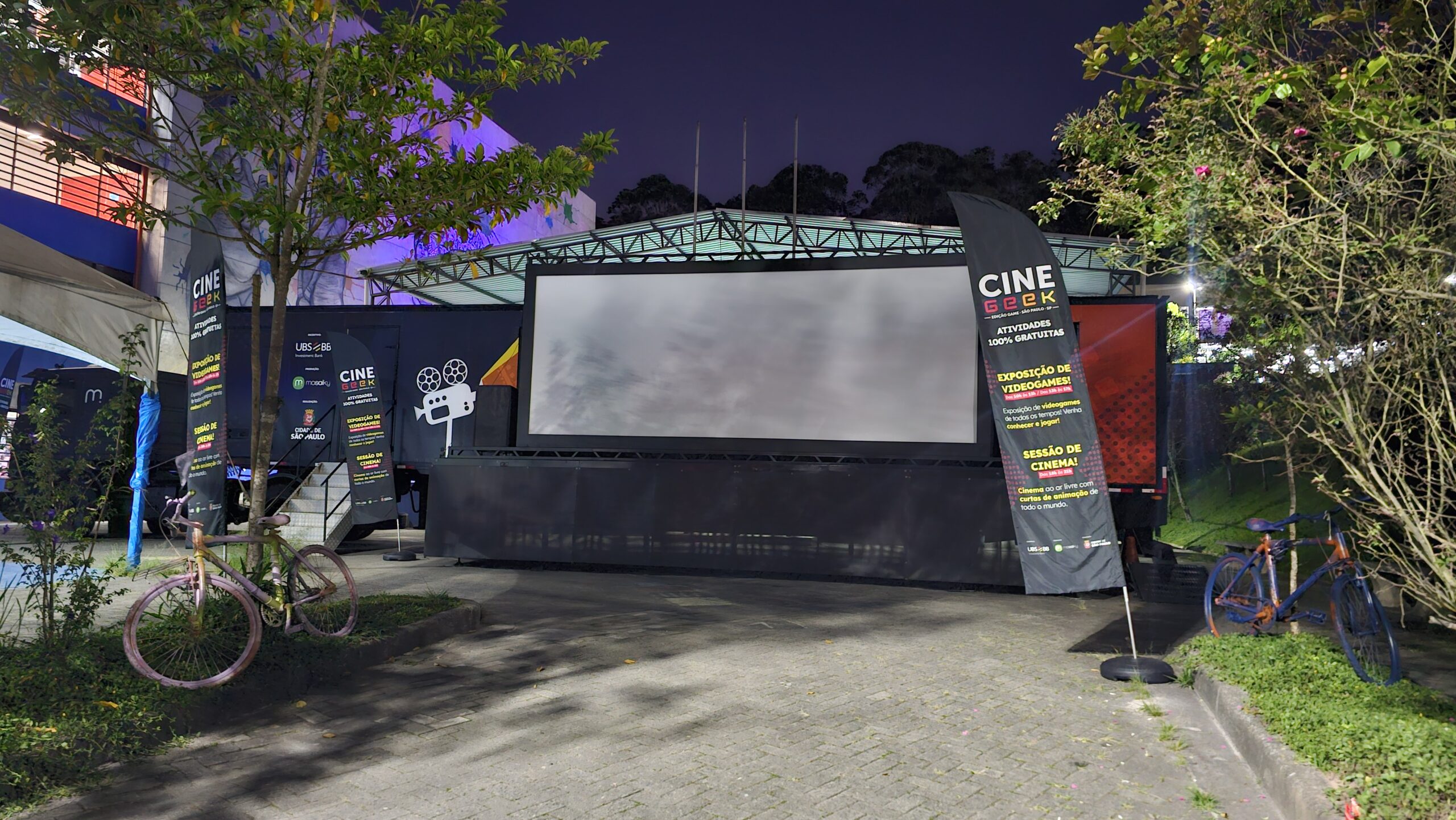 Ao longo de seus 20m de extensão, a carreta carrega um cinema ao ar livre e uma exposição de arte. É o CINE GEEK EDIÇÃO GAME, que leva atrações variadas para a capital Paulista.