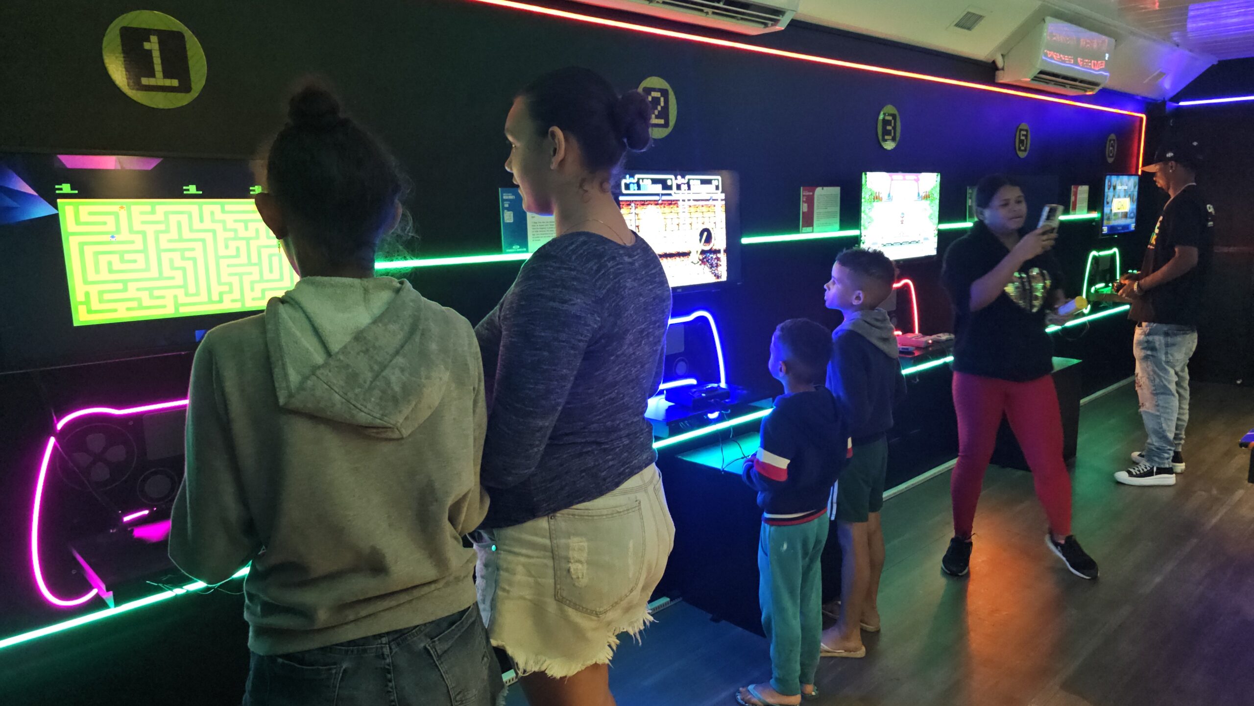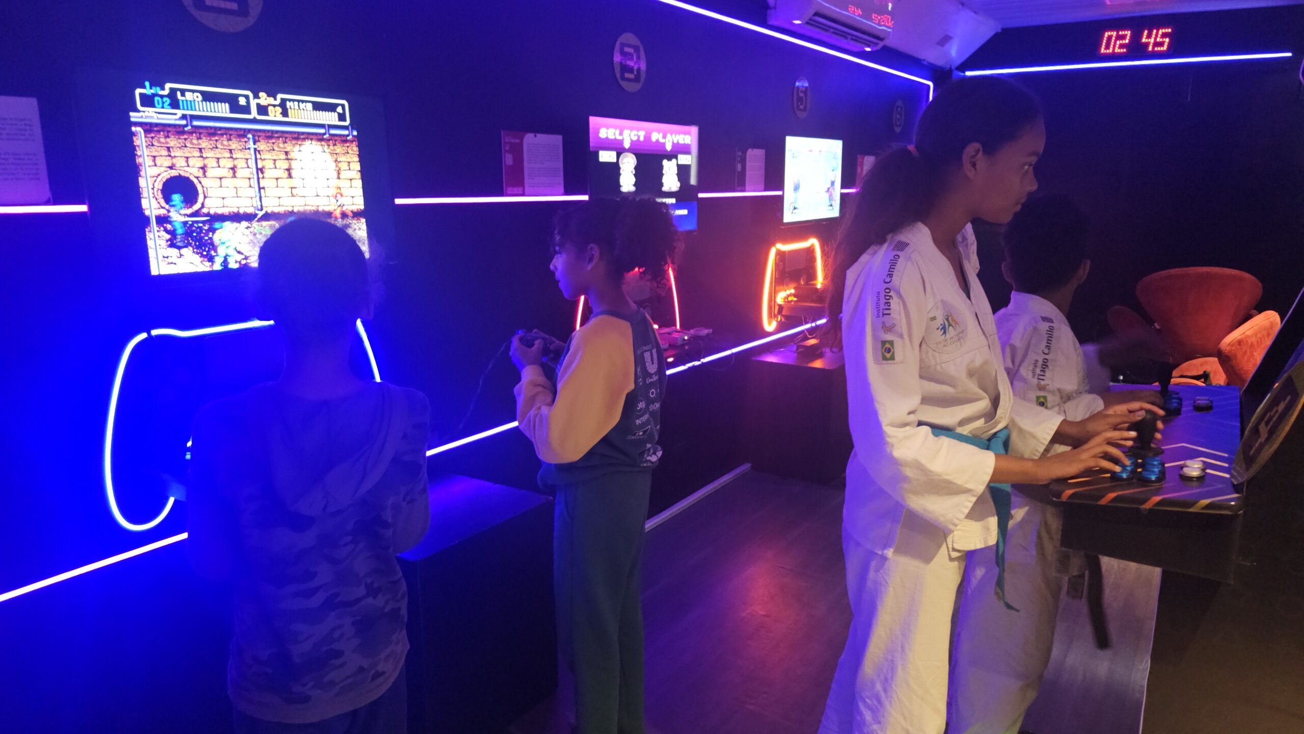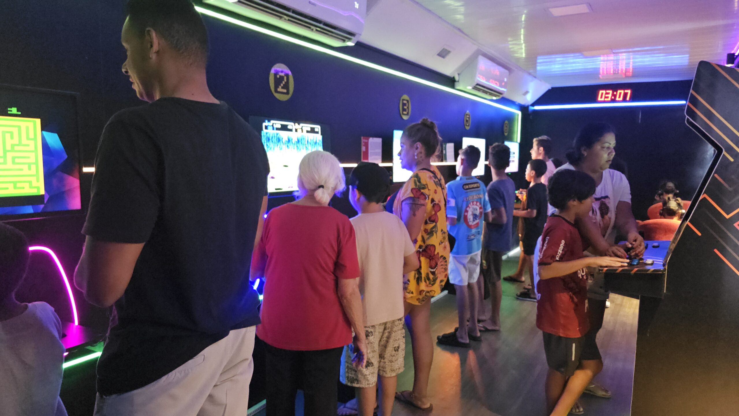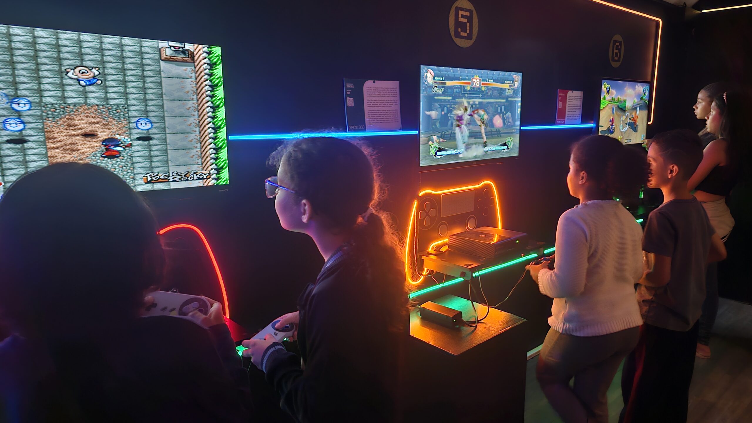 Exposição de videogames de todas as gerações para conhecer e jogar! São estações com consoles desde o final da década de 70, passando pelos arcades e chegando até os mais atuais.
