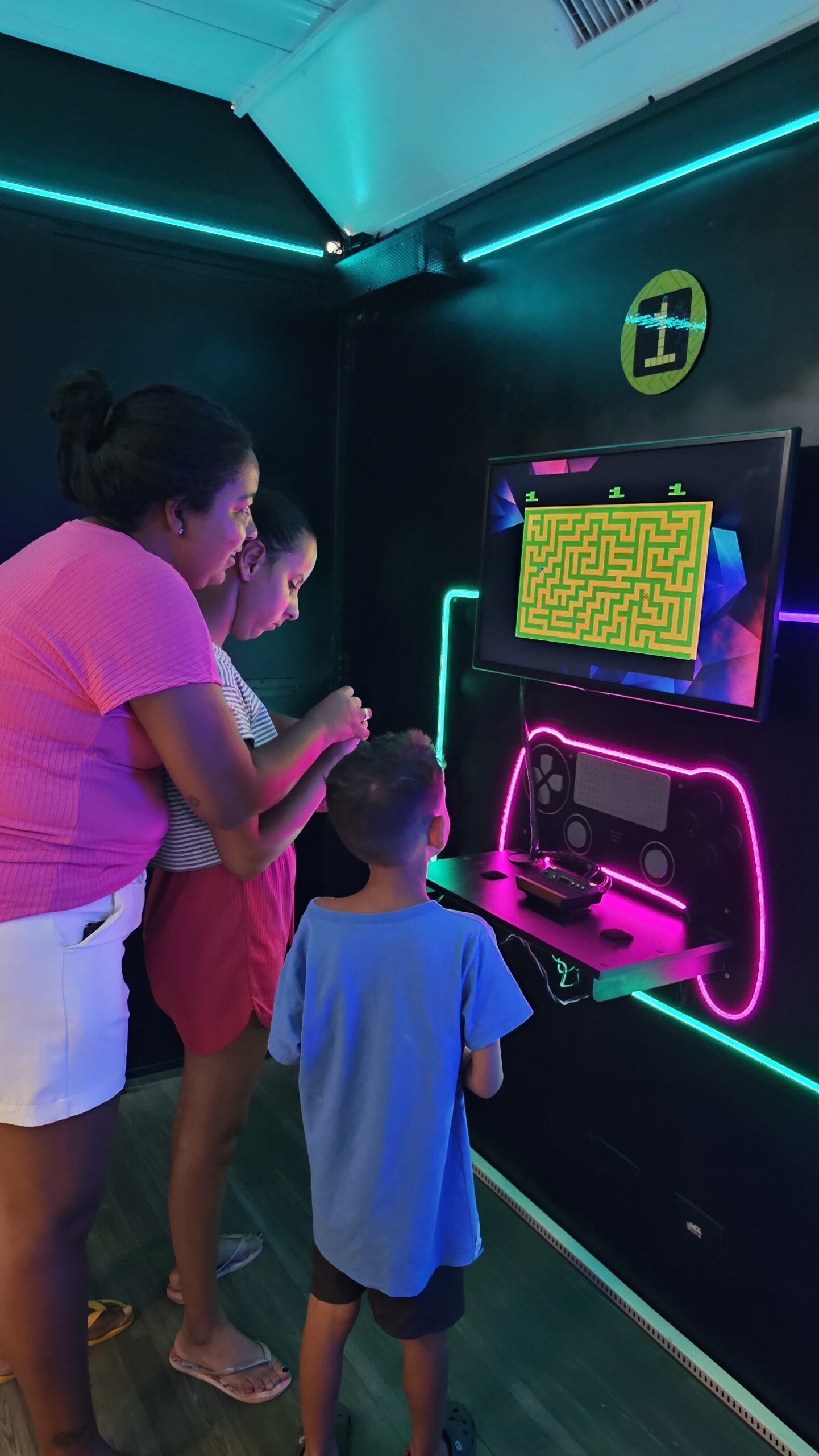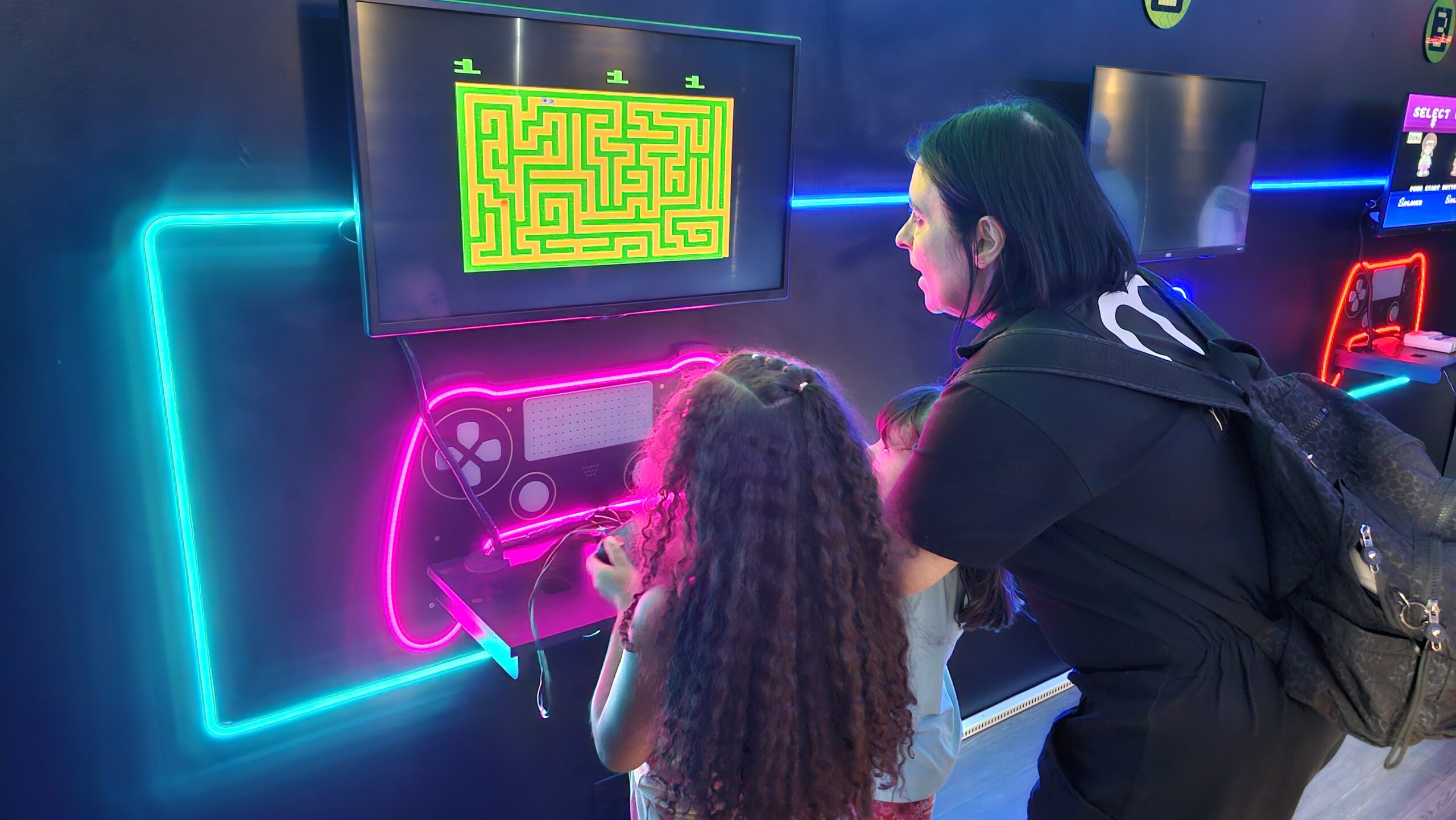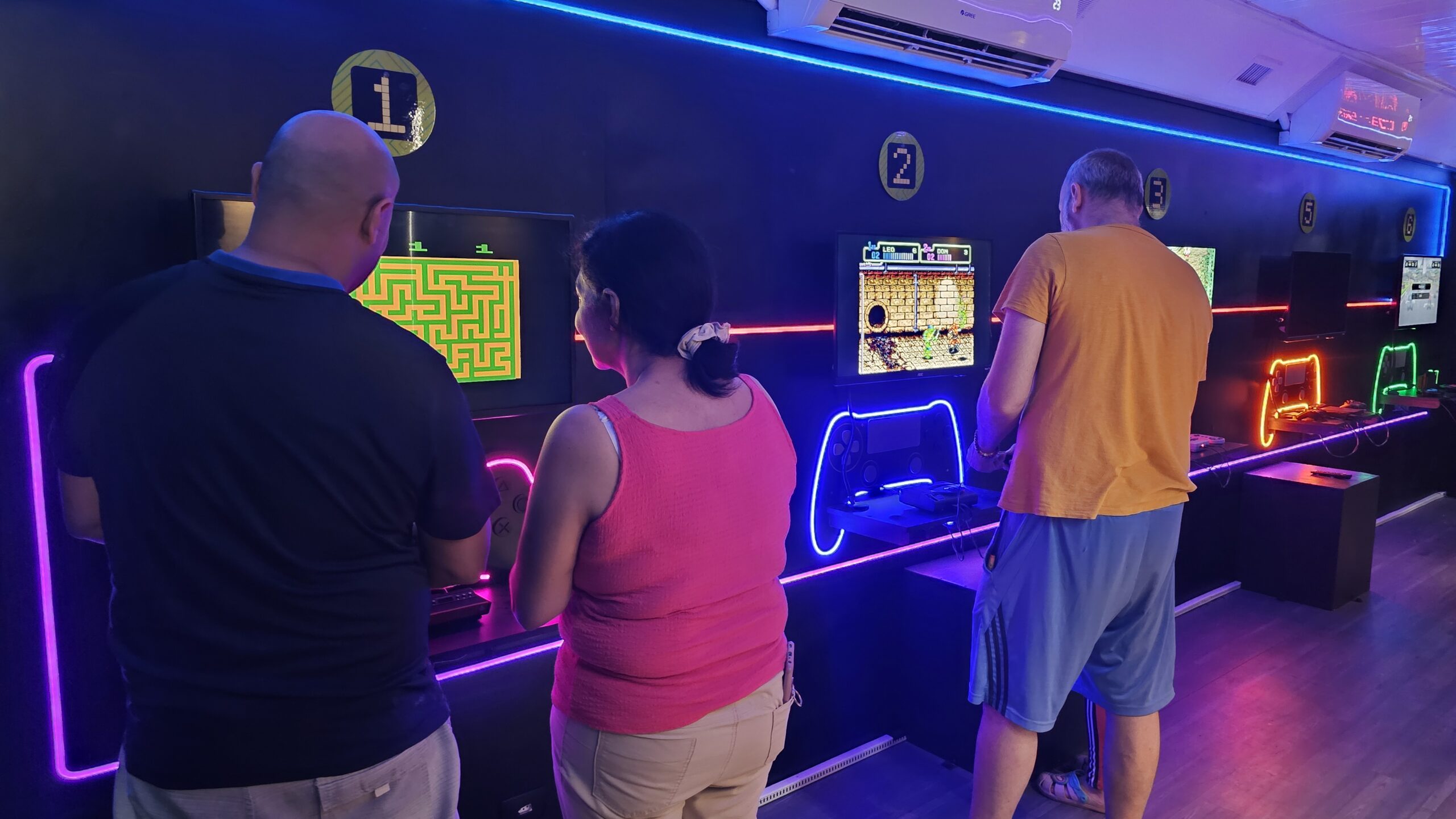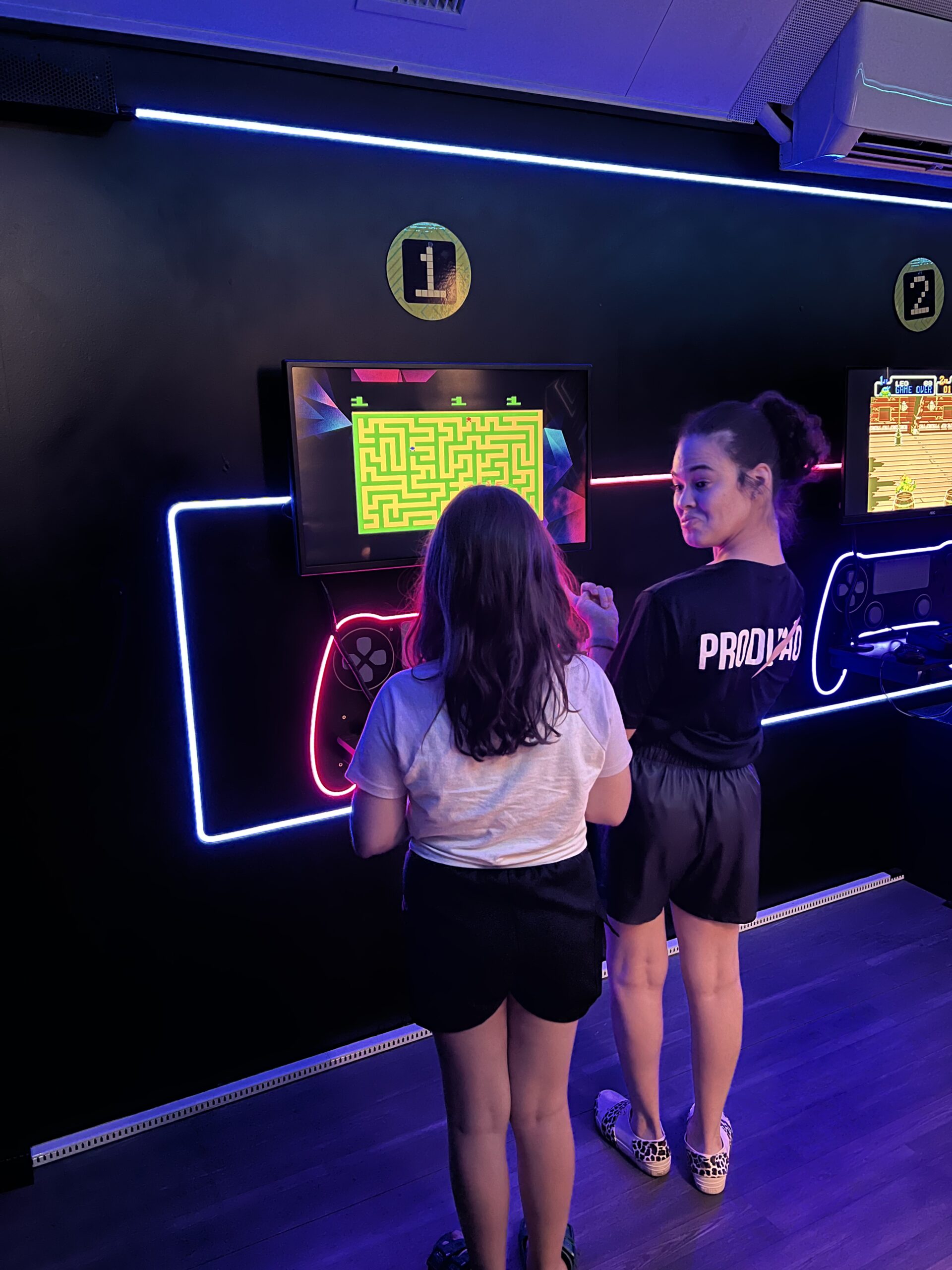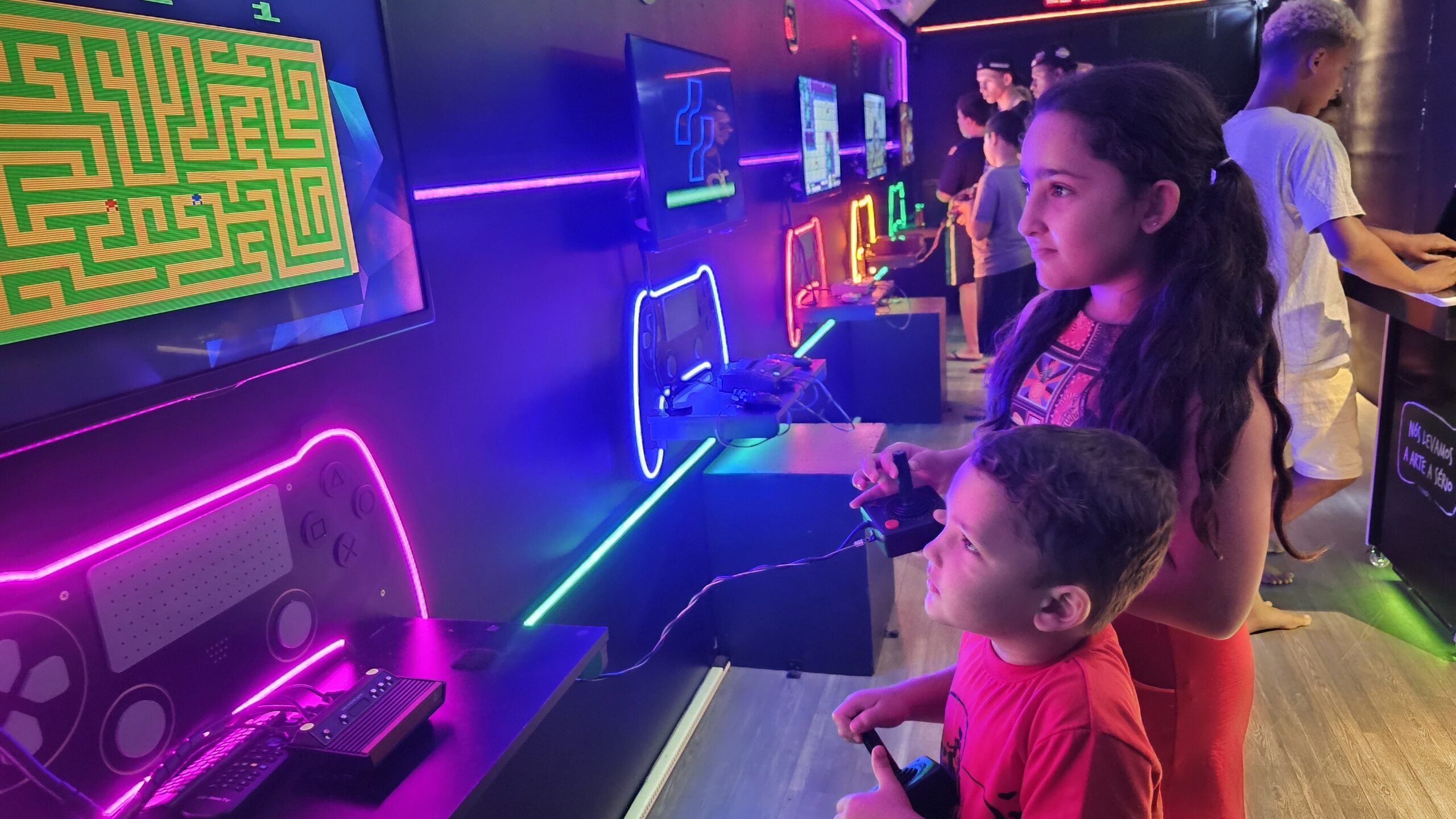 A exposição também é um jogo! Os visitantes fazem um circuito em duplas, experienciando games cooperativos e na modalidade versus, para curtir todos os diferentes tipos de jogos enquanto viajam de maneira interativa pela linha histórica dos videogames.