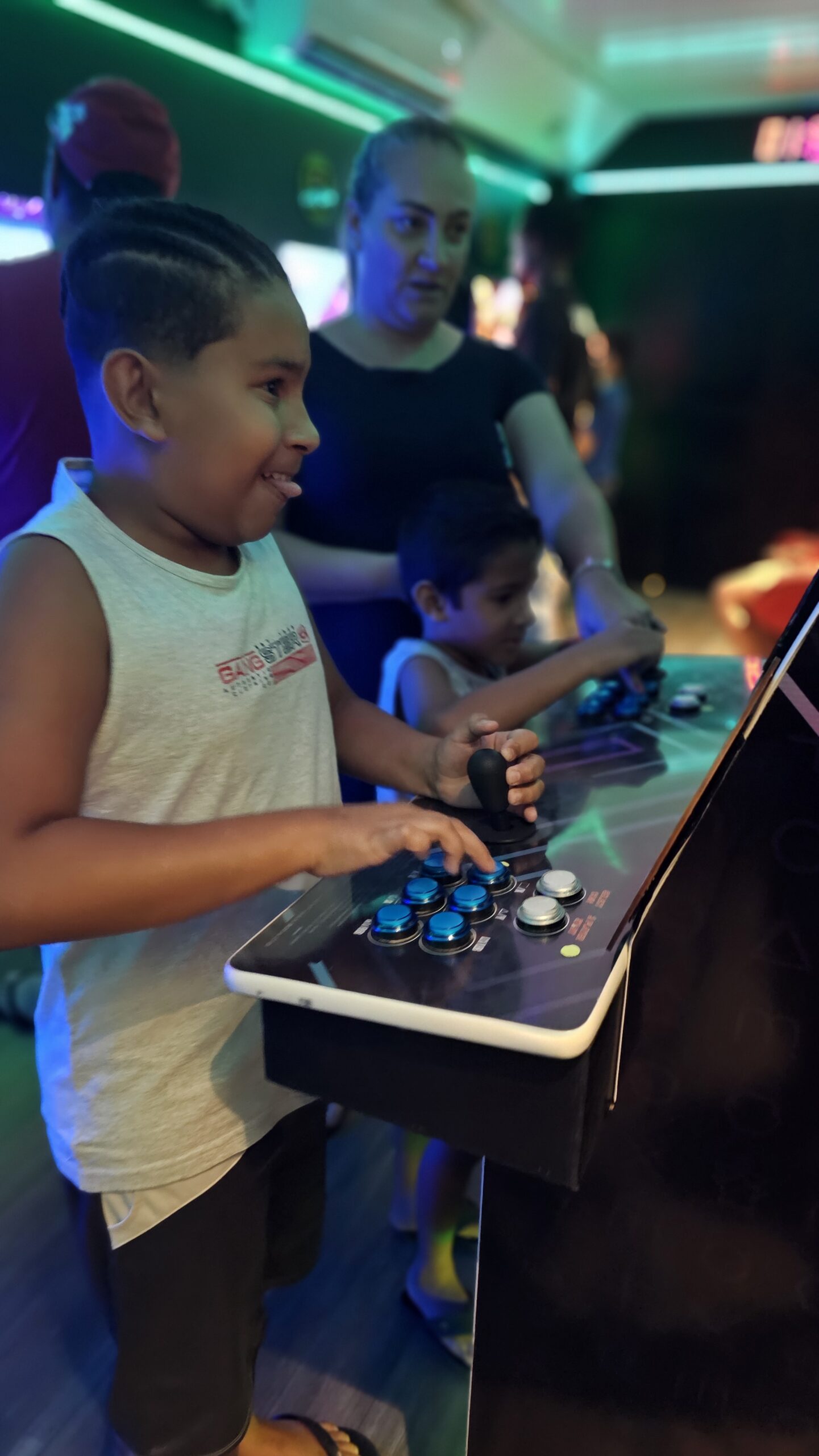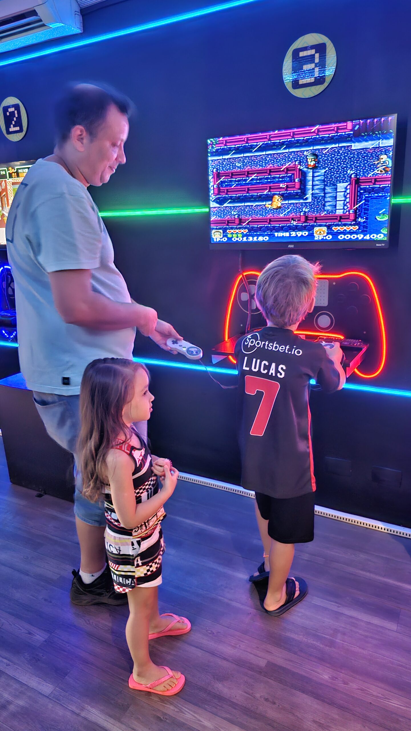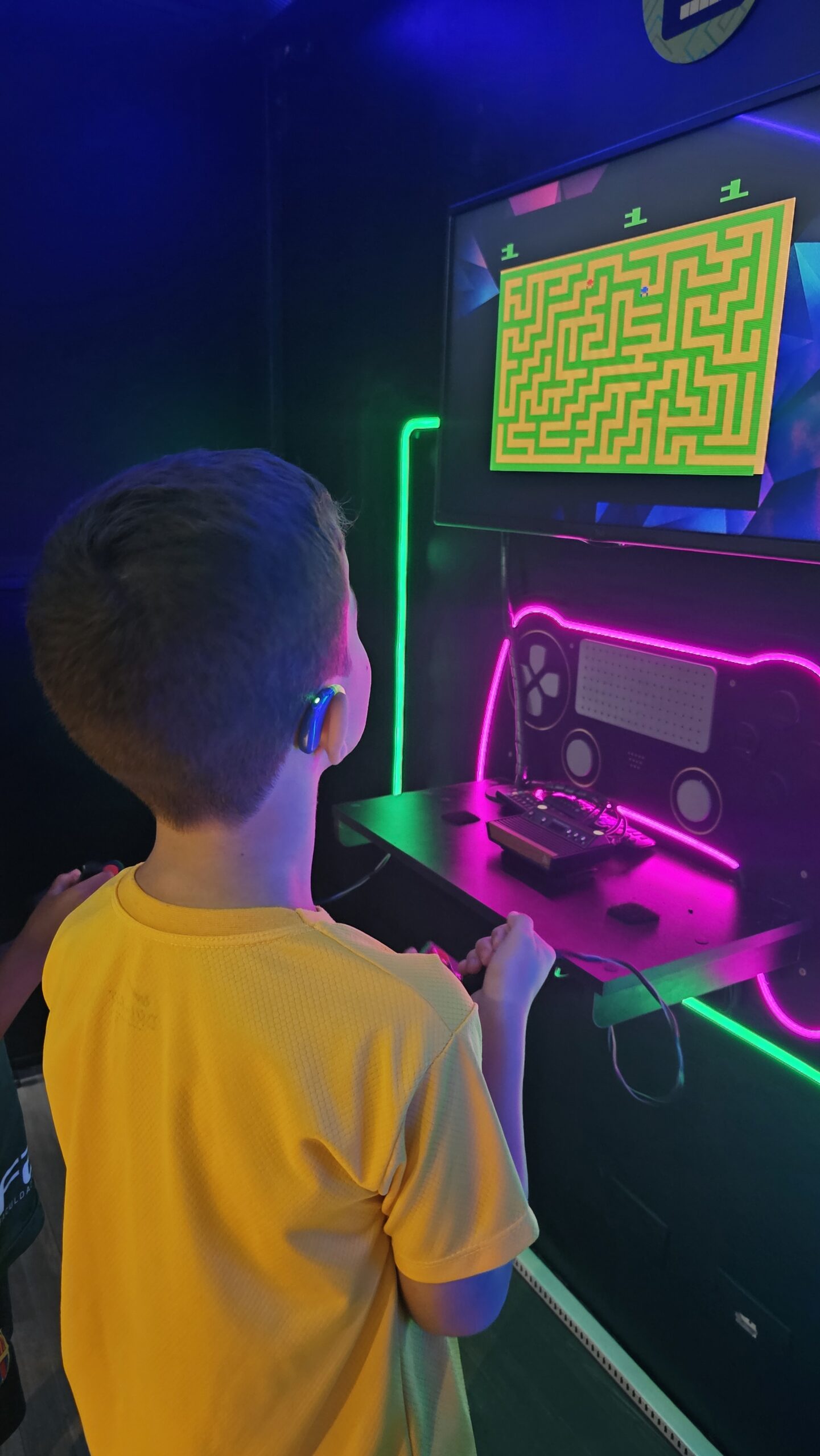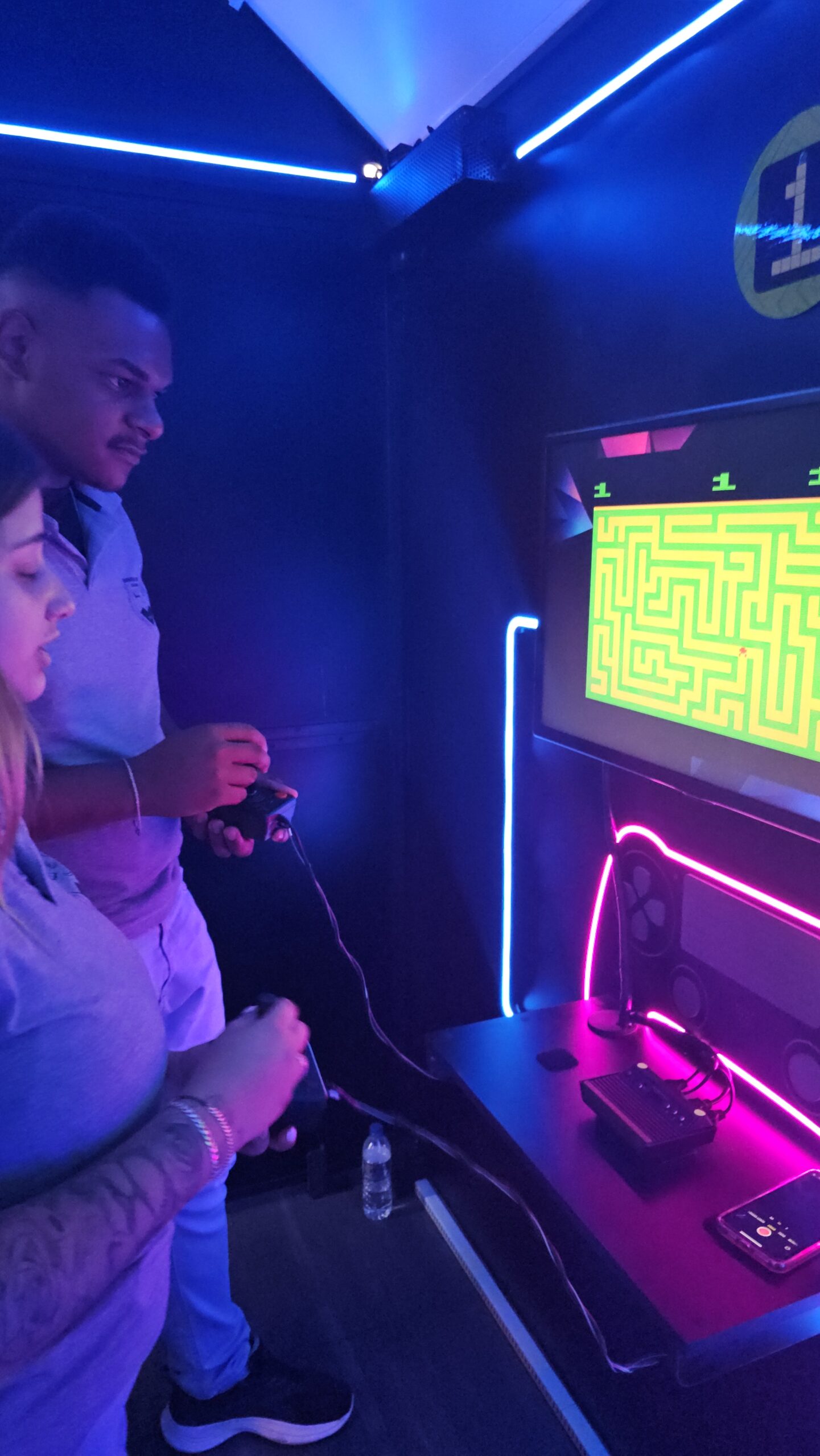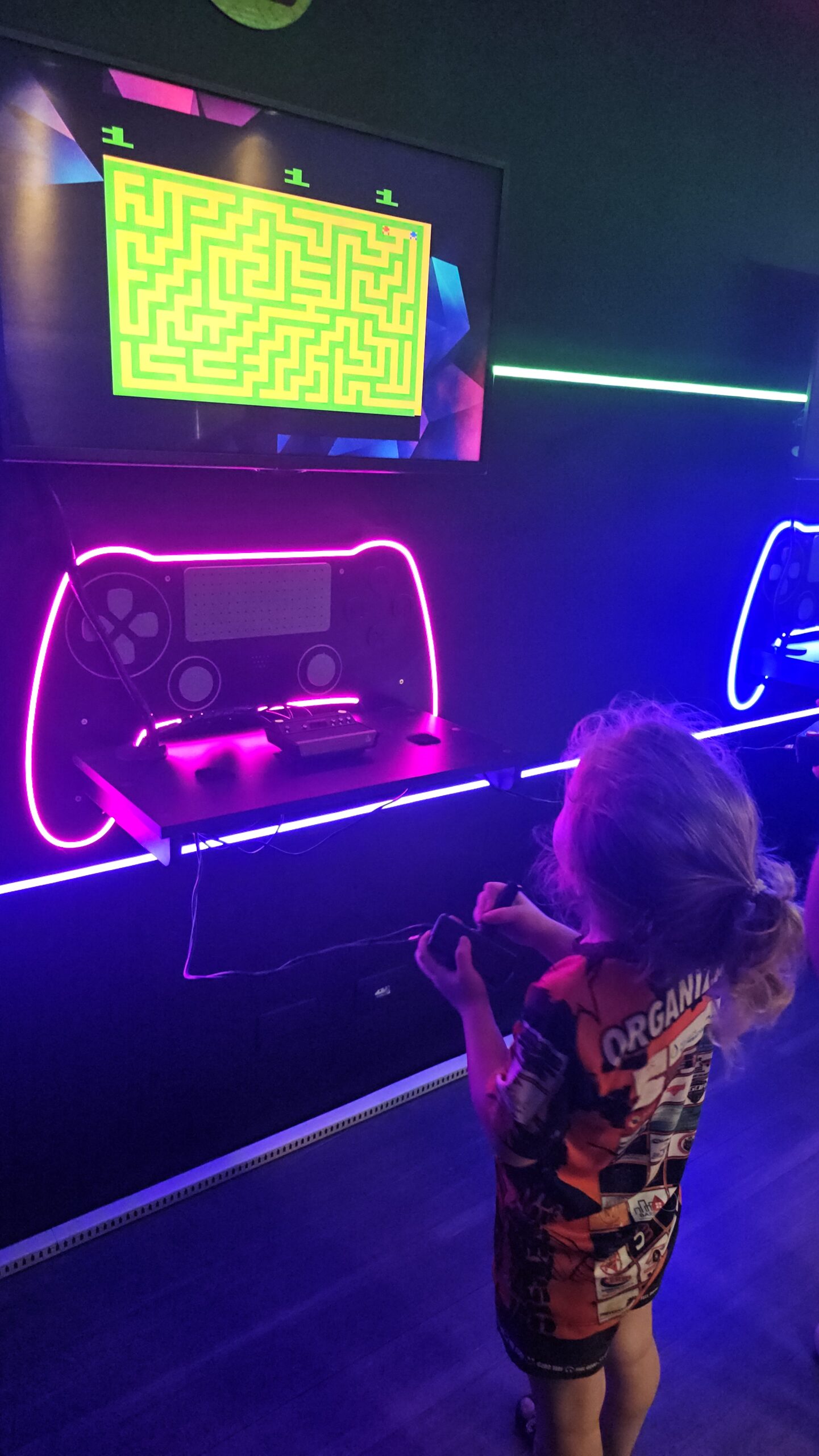 A exposição também é um jogo! Os visitantes fazem um circuito em duplas, experienciando games cooperativos e na modalidade versus, para curtir todos os diferentes tipos de jogos enquanto viajam de maneira interativa pela linha histórica dos videogames.