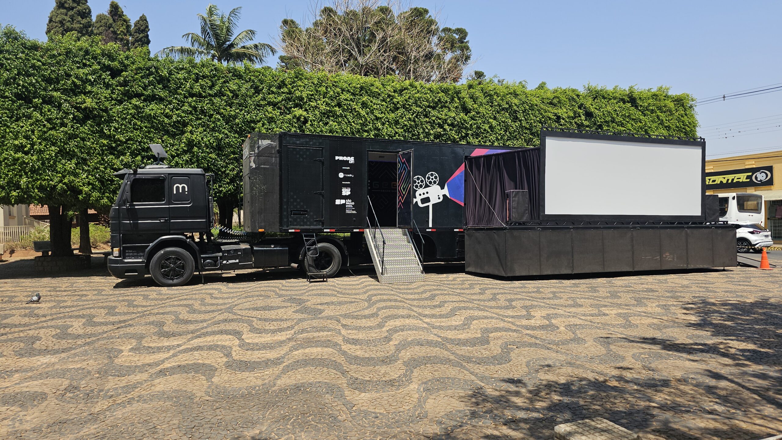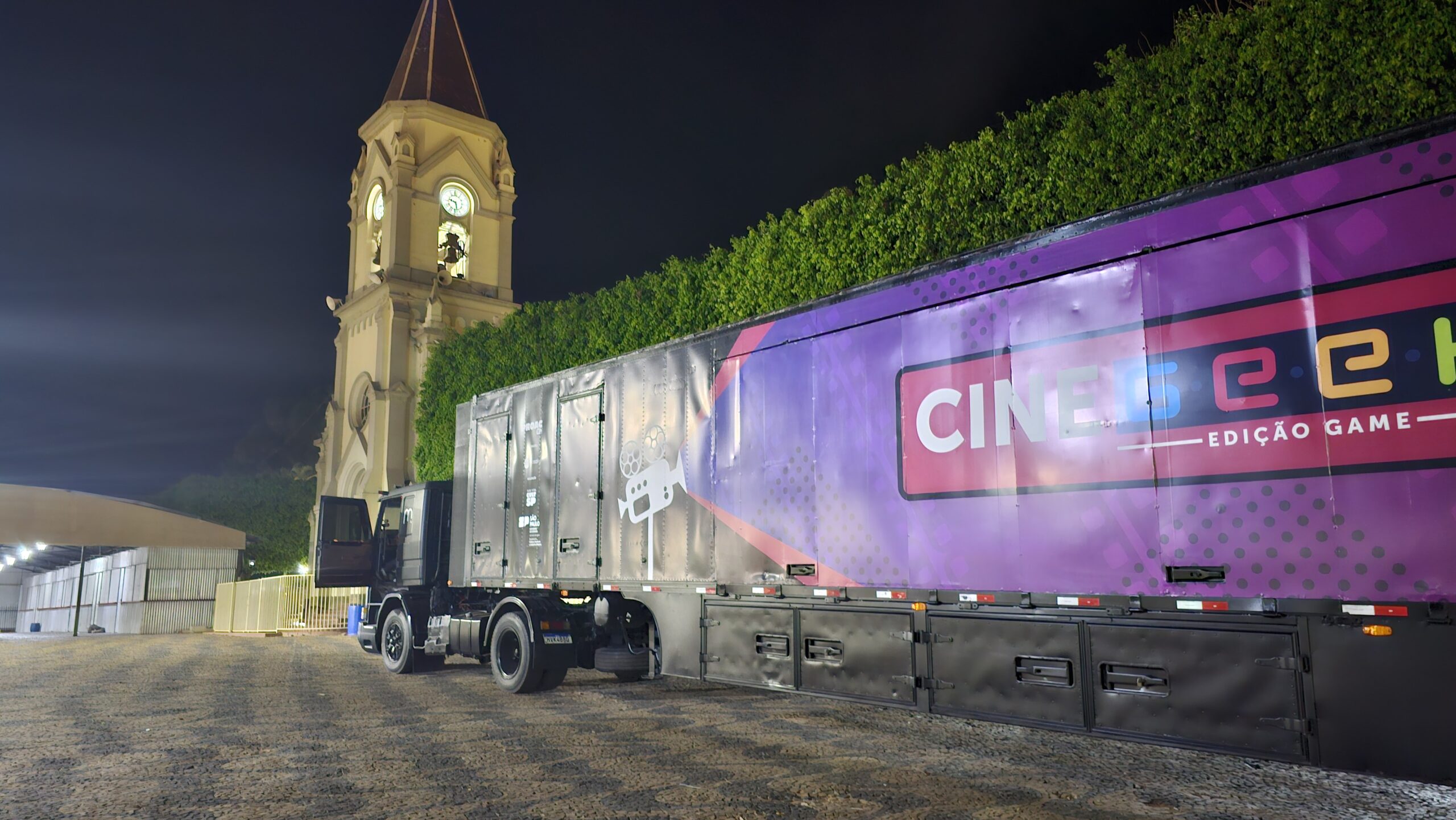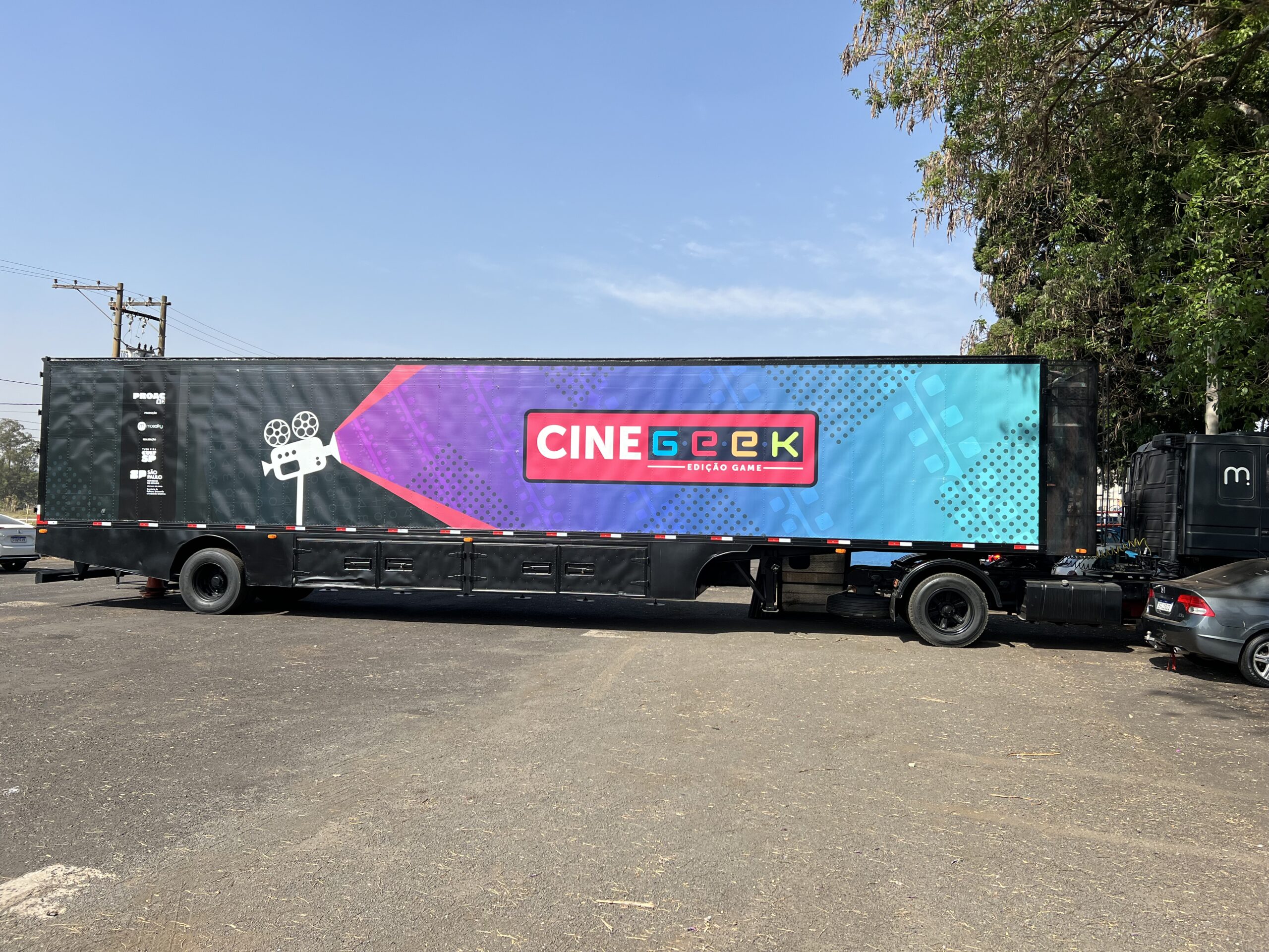 Ao longo de seus 20m de extensão, a carreta carrega um cinema ao ar livre e uma exposição de arte. É o CINE GEEK EDIÇÃO GAME, que leva atrações variadas para o interior de São Paulo.