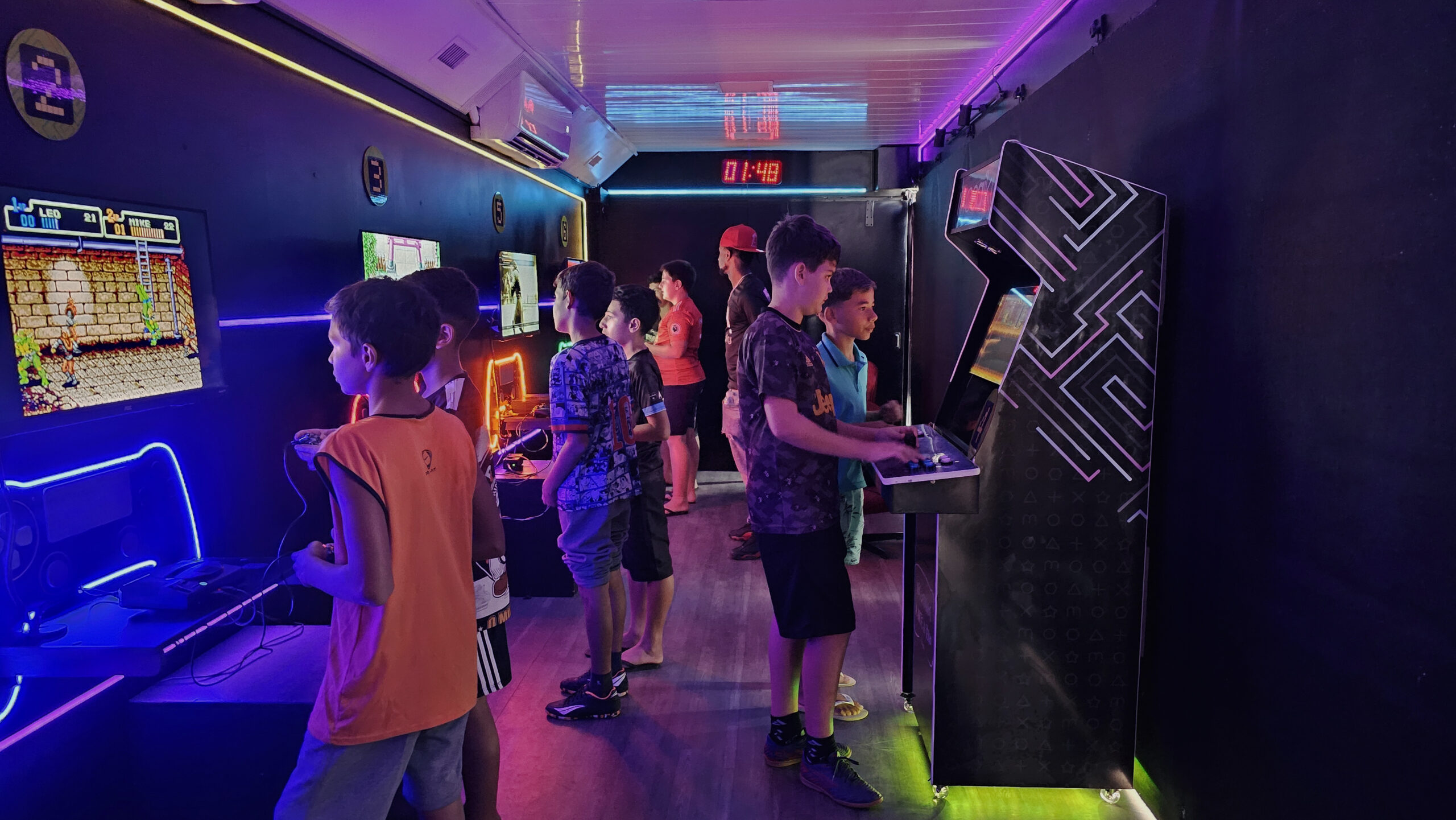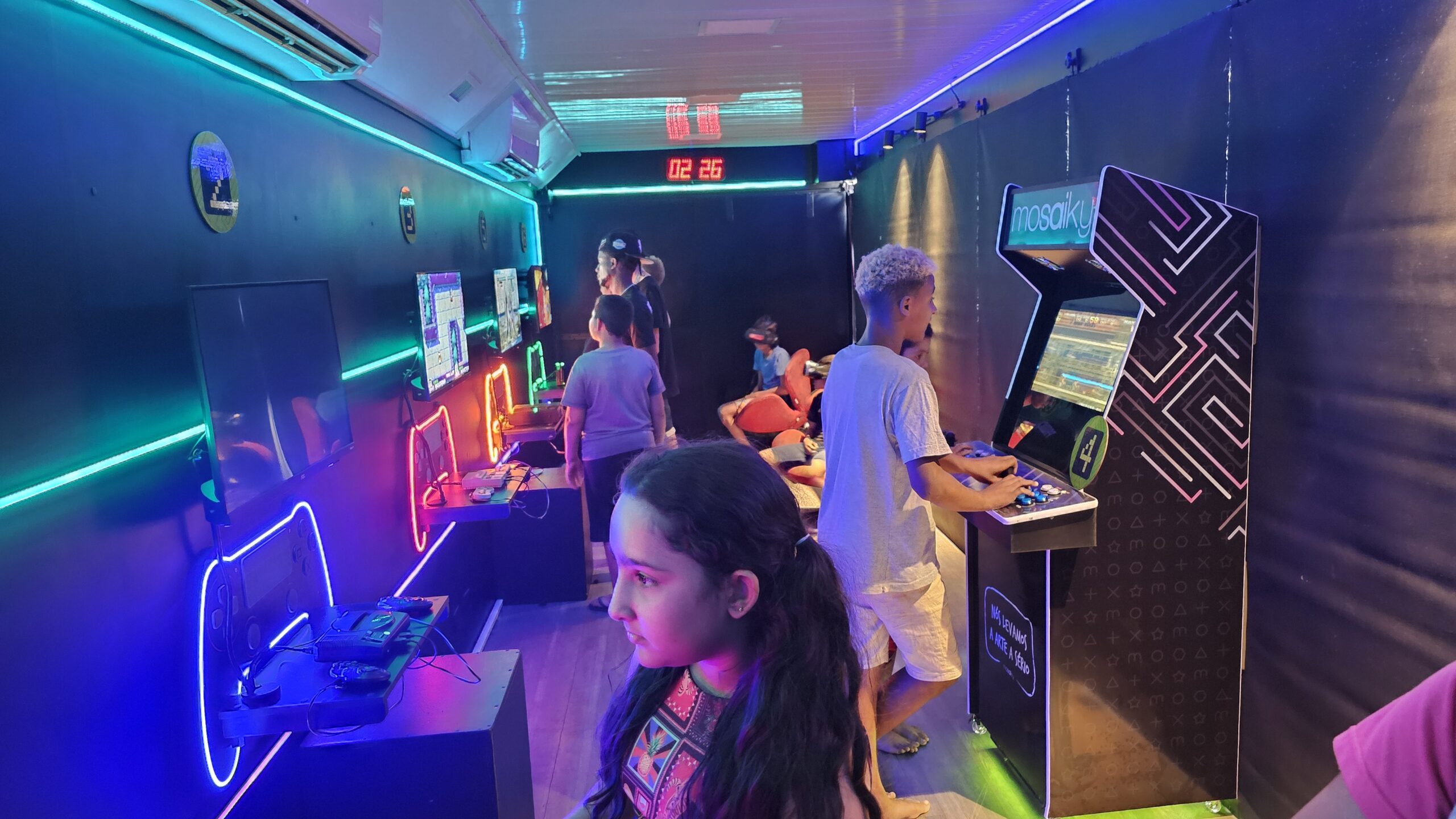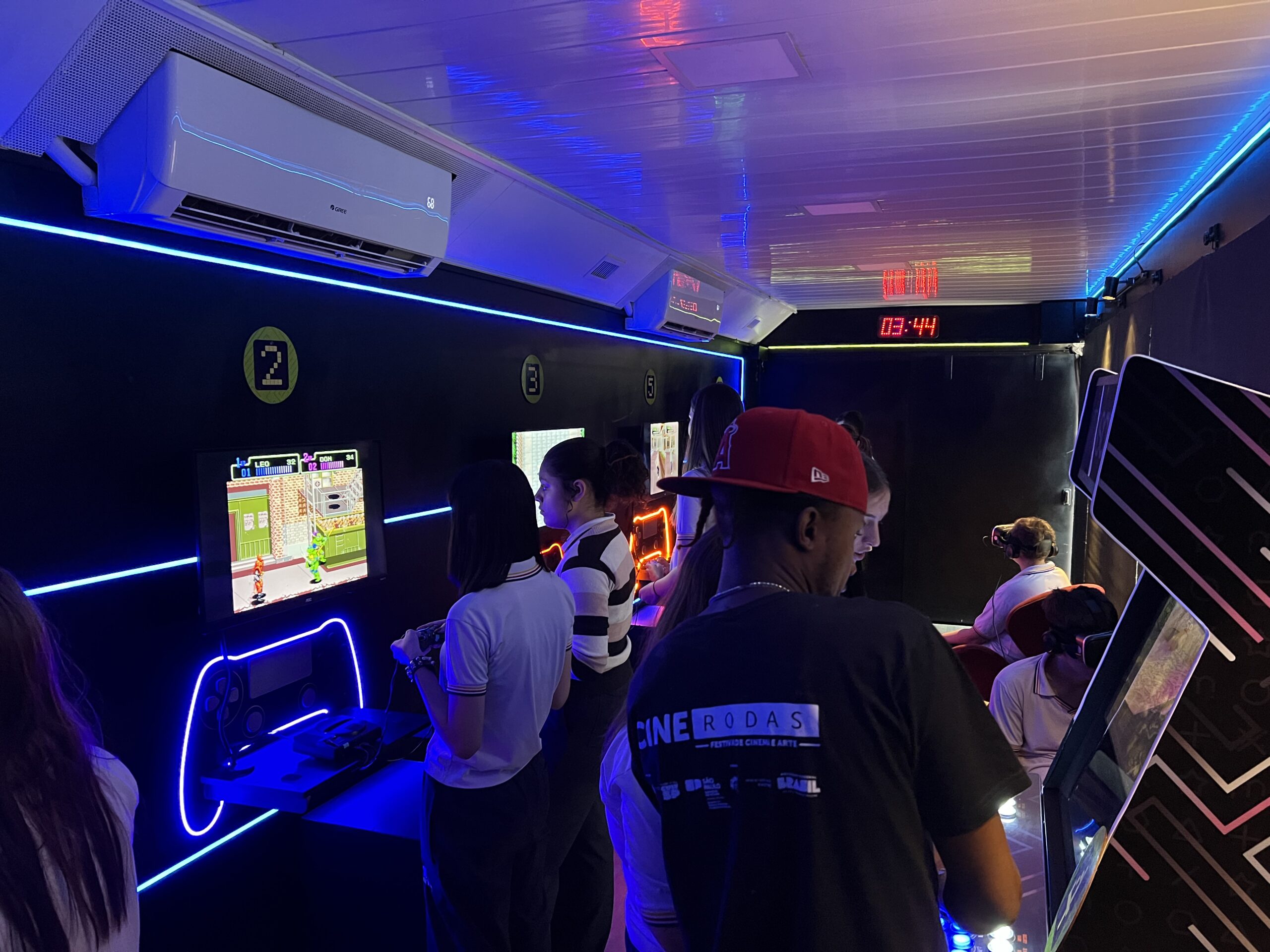 EXPOSIÇÃO DE VIDEOGAMES / INTERIOR DA CARRETA:
